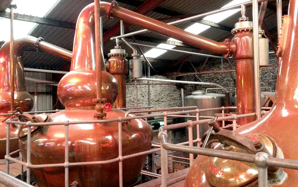 Die Dingle Distillery hat ihre Wurzeln in einer alten Getreidemühle aus dem Jahr 1840, deren Mühlrad noch heute Zeugnis vergangener Zeiten ablegt. Nach dem Erwerb des Gebäudes im Jahr 2008 wurde sie mit Hingabe restauriert und in eine Brennerei verwandelt. Ende 2012 floss hier der erste „New Spirit“ – der Beginn einer neuen Whiskey-Tradition an der rauen Westküste Irlands.