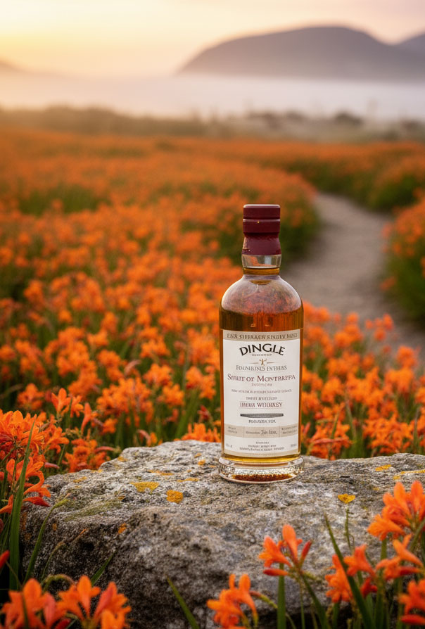 Unser Whiskey trägt den Namen „Spirit of Montbretia“ – inspiriert von den feurig orangefarbenen Blumen, die an der Küste Dingles wachsen.